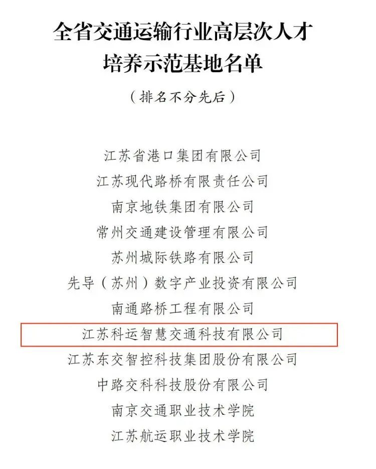 蘇交科 · 江蘇科運智慧榮獲“全省交通運輸行業(yè)高層次人才培養(yǎng)示范基地”稱號
