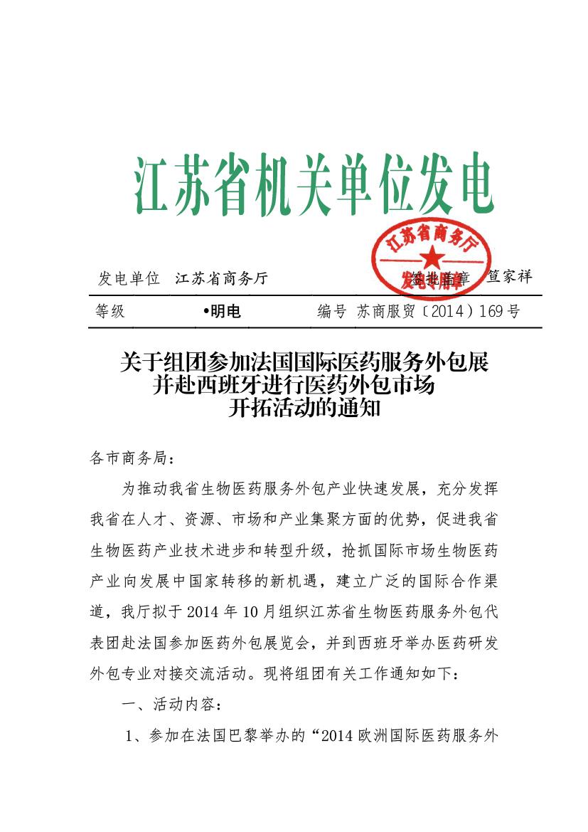 關(guān)于組團參加法國國際醫(yī)藥服務(wù)外包展并赴西班牙進行醫(yī)藥外包市場開拓活動的通知